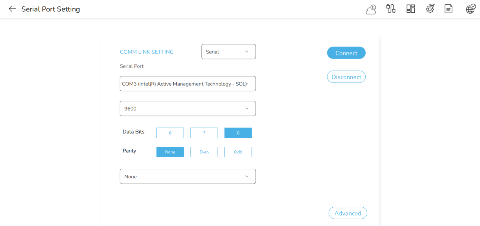 In the serial port setting the user can connect the device using serial communication. Also, users can set different baud rates as per the requirement and connect the device.