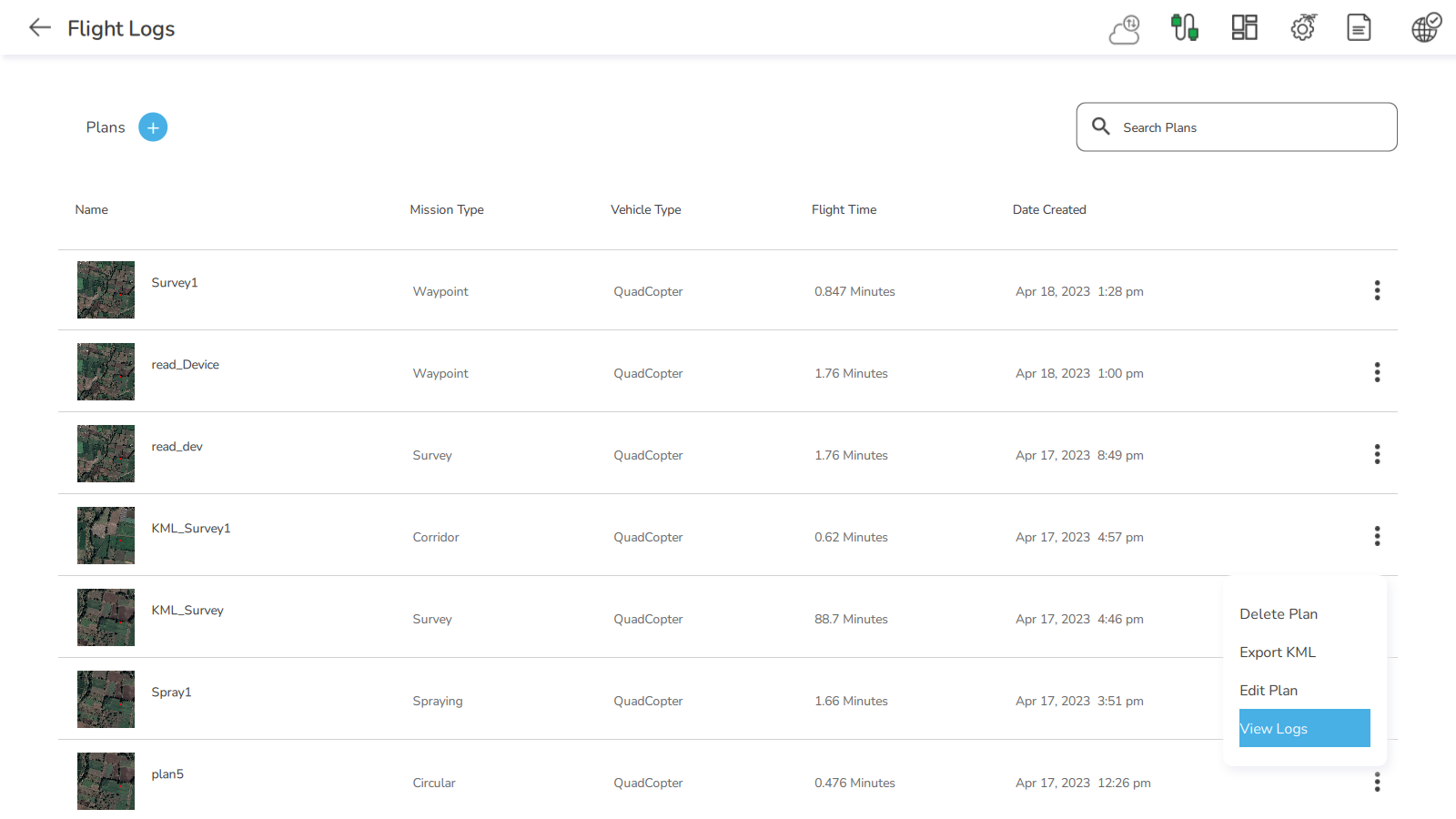 Flight logs are generated after the successful flight. You can see all the logs related to flight in the following ways: