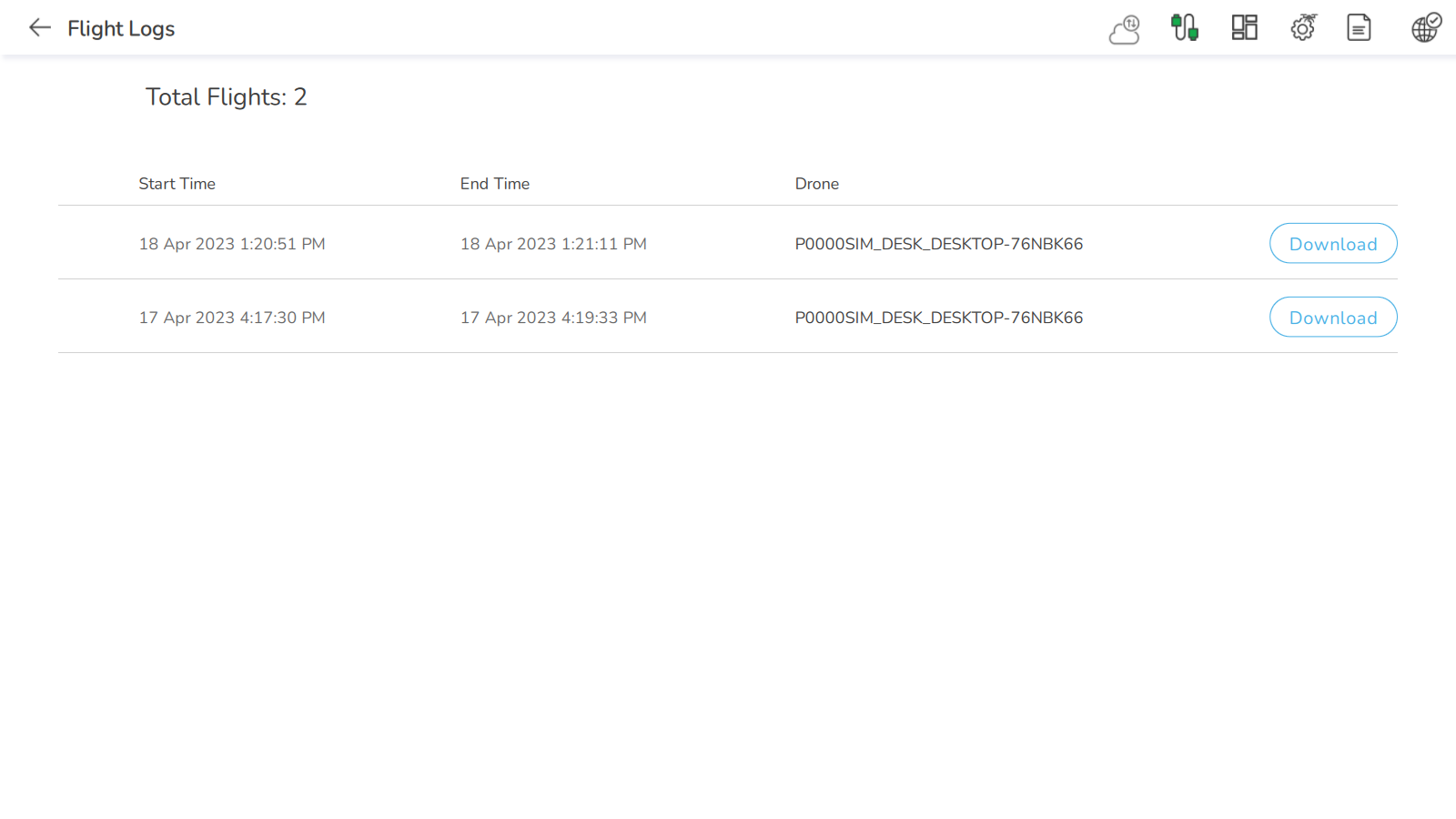 It includes the logs of all the flights for all types of drones and pilots. The list displayed will have the status, date, and time of the flight. The user has to search for a particular flight.&#x20;